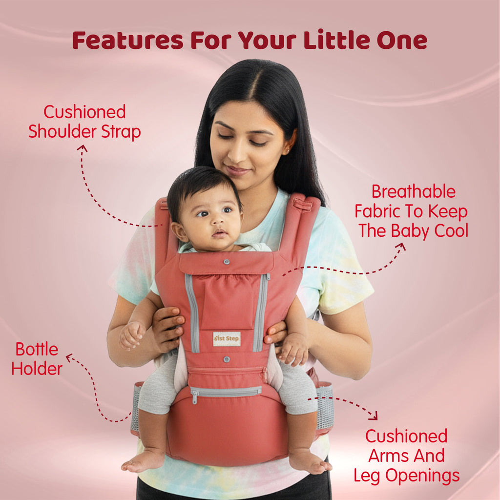 The Baby Carrier Makes Hands-Free Baby Carrying Possible. 1st Step Baby Carrier Is Made To Adapt To Your Little Ones Growth From Infancy To Toddlerhood With Its Multiple Carrying Positions And Its Adjustable Straps. Its Breathable Mesh Absorbs The Heat For Your Little Ones And The Superior Lumbar Support Helps To Distribute Weight And Alleviates The Back Pain Experienced While Carrying A Baby. Detachable Seat Can Be Used For Support When Carrying The Baby As He Grows Older.