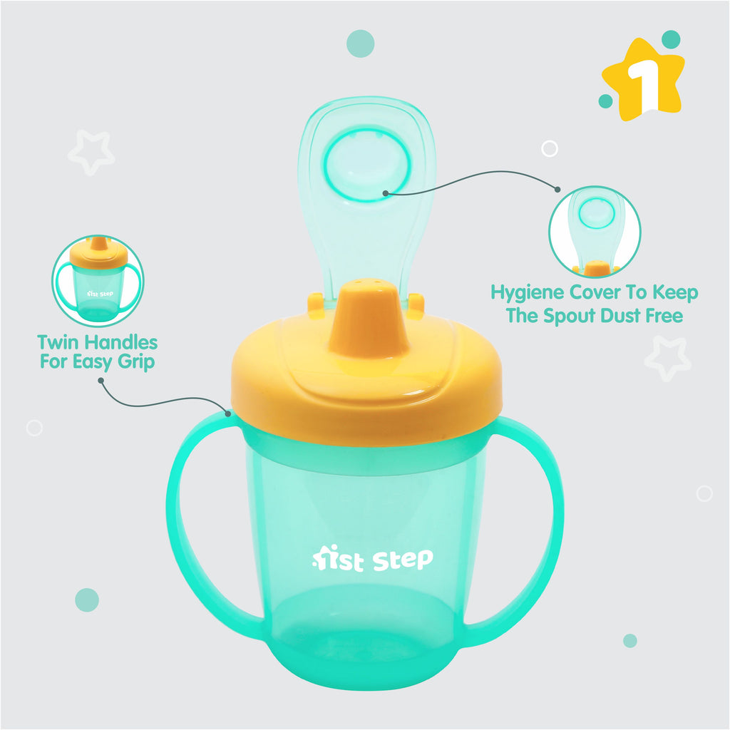 1st Step Sipper Cups Are Designed To Meet The Baby's Needs As He Grows Older And Comes With Twin Handles To Provide A Good Grip On The Sipper. Helps The Baby In Switching From Nipple Feeding To Cup Feeding. The Sipper Is Made From Polypropylene And Is BPA Free |