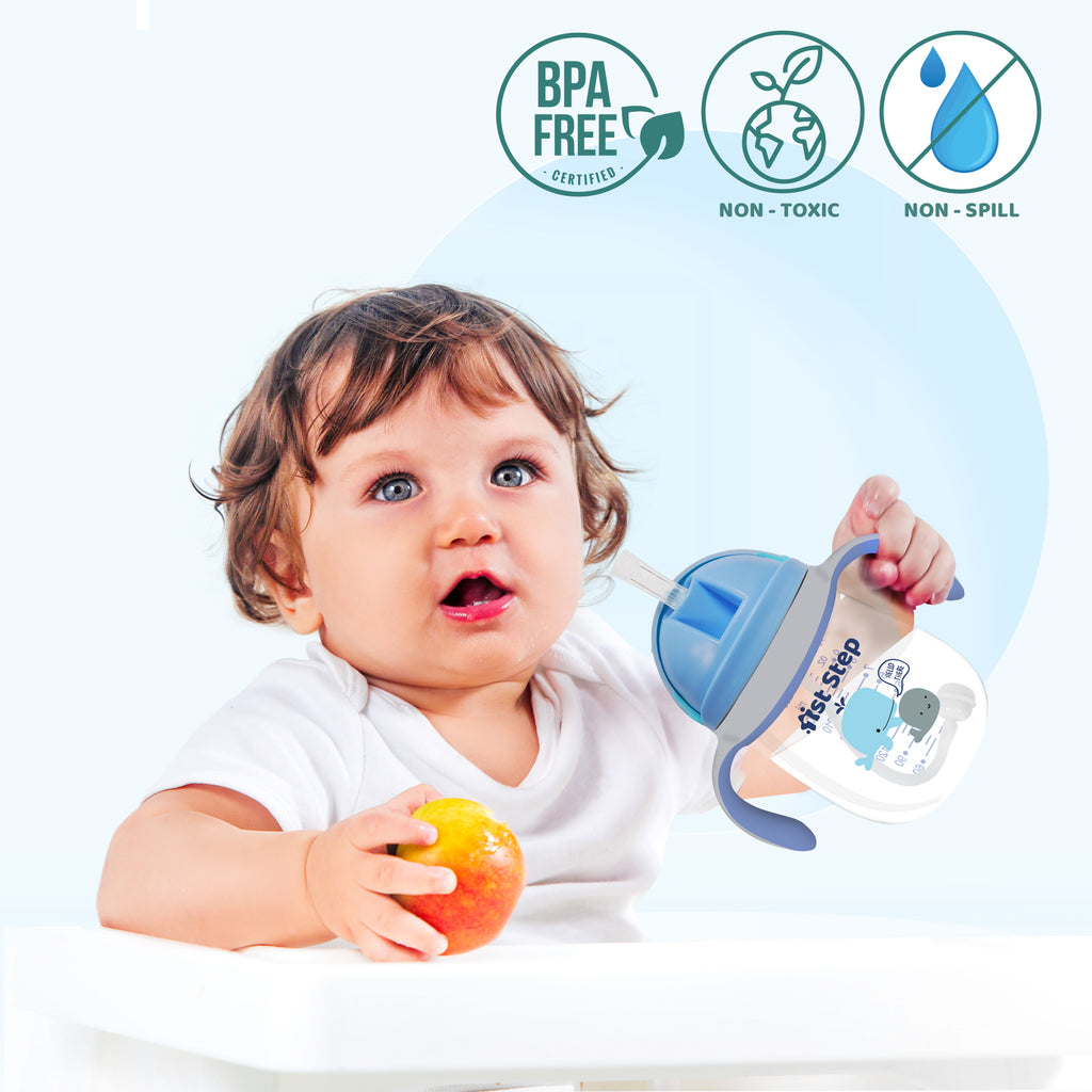 This Amazing Straw Sipper From 1st Step Is Made Of Tritan Material Which Is Engineered To Be Be Better Than Glass, Stainless Steel Or Any Forms Of Plastic And Is Equipped With Detachable Twin Handles Designed As Per Baby's Little Hands To Suit The Baby's Preference And Needs. Its Lid Keeps The Straw Hygienic And Convenient To Use While On-The-Go. The Straw Is Made Up Of Silicone Which Is Gentle On Baby's Tender Teeths And Are Bite Resistant. The Sipper Is BPA Free And Non-Toxic And Is Made To The Highest Safety Standards.