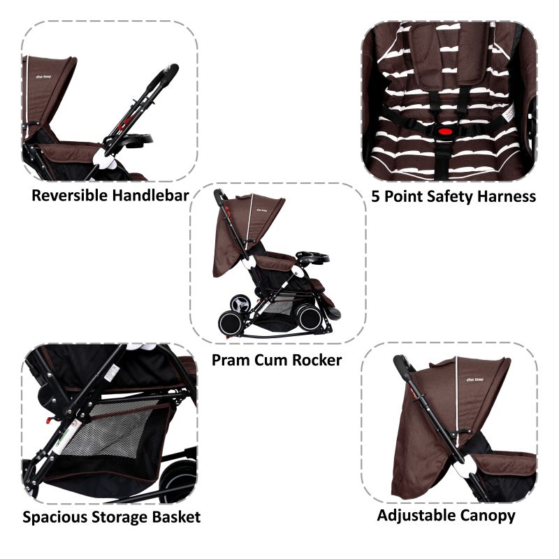 | Description | Outing With Your Little One Can Be Tricky, 1st Step Baby Stroller Makes Your Outing With Your Baby Comfortable For You As Well As Your Baby. Reversible Handlebar Allows Baby To Face You When Younger And Face Forward As They Get Older. Comes With 5 Point Safety Harness To Provide Maximum Safety For Your Little One And Storage Basket At The Bottom Helps In Storing All Neccessary Items Of Your Little One. |