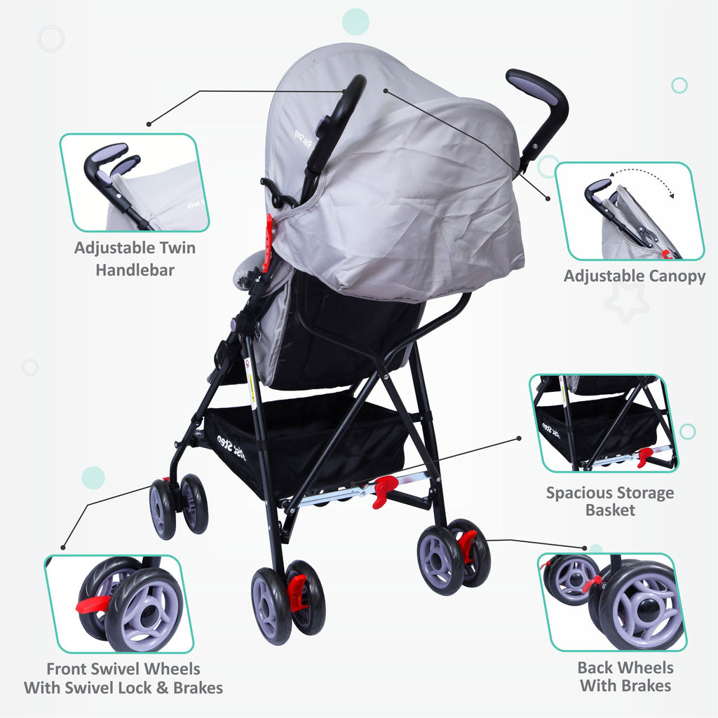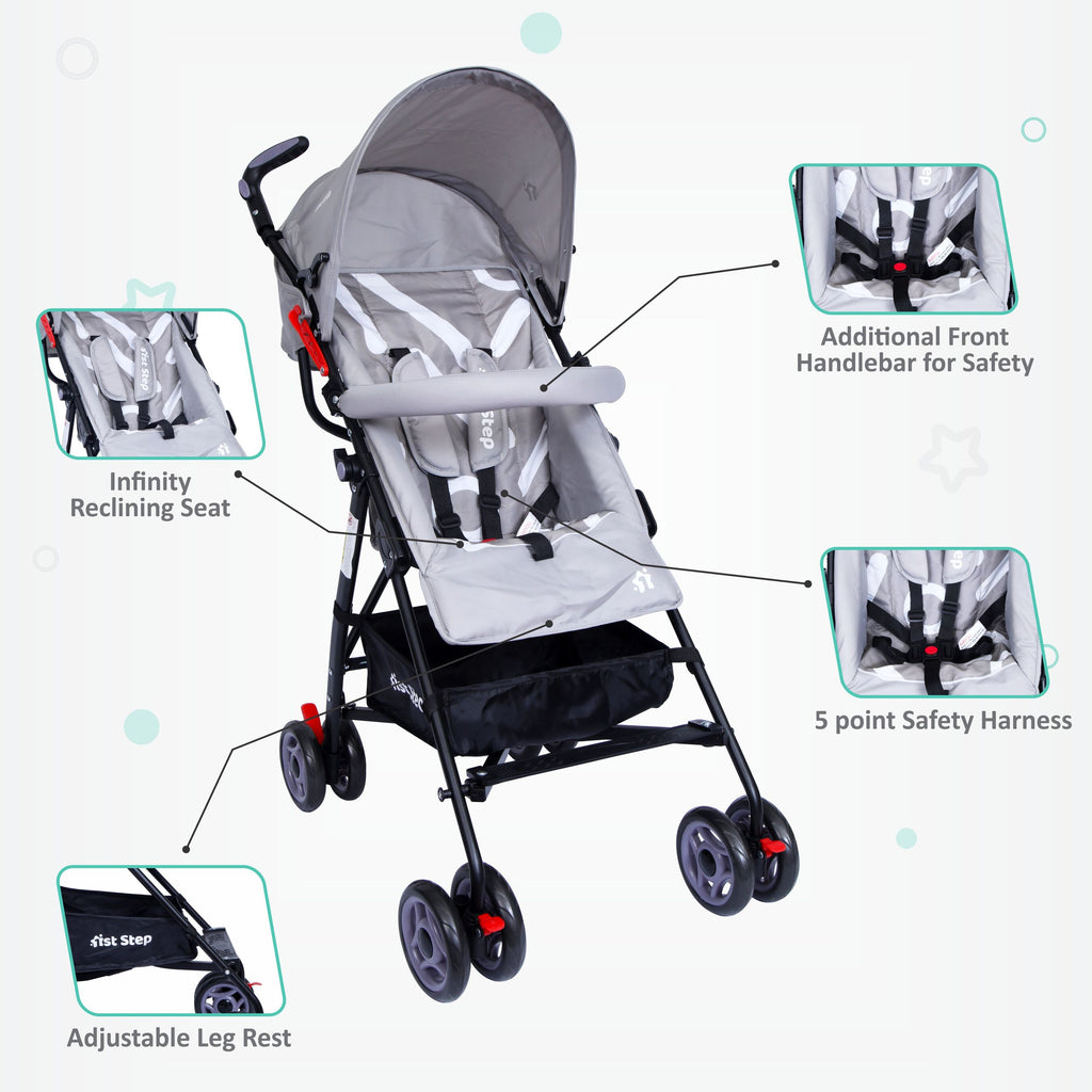 - 3 Point Safety Harness:- The Stroller Comes With 3 Point Safety Harness To Provide Maximum Safety To Your Little One.