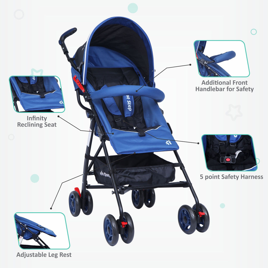 - 3 Point Safety Harness:- The Stroller Comes With 3 Point Safety Harness To Provide Maximum Safety To Your Little One.