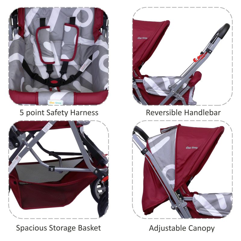 | Description | Outing With Your Little One Can Be Tricky, 1st Step Baby Stroller Makes Your Outing With Your Baby Comfortable For You As Well As Your Baby. Reversible Handlebar Allows Baby To Face You When Younger And Face Forward As They Get Older. Comes With 5 Point Safety Harness To Provide Maximum Safety For Your Little One And Storage Basket At The Bottom Helps In Storing All Necessary Items Of Your Little One. |