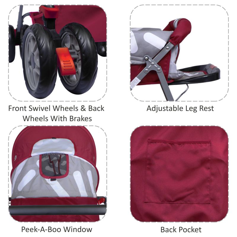 - Front Swivel Wheels And Back Wheels With Brakes:- Front Swivel Wheels Provide Maximum Comfort While Strolling In The City And Front And Back Wheels Brakes Provide Additional Safety