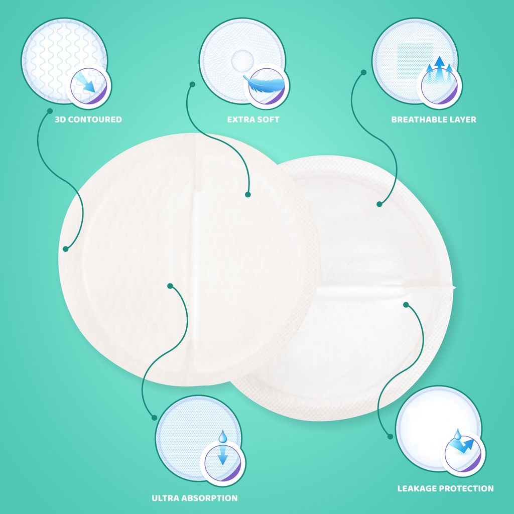 • SUPER ABSORBENCY : The superior fabric absorbs excess milk (up to 80 ml) and keeps the skin dry and fresh all day