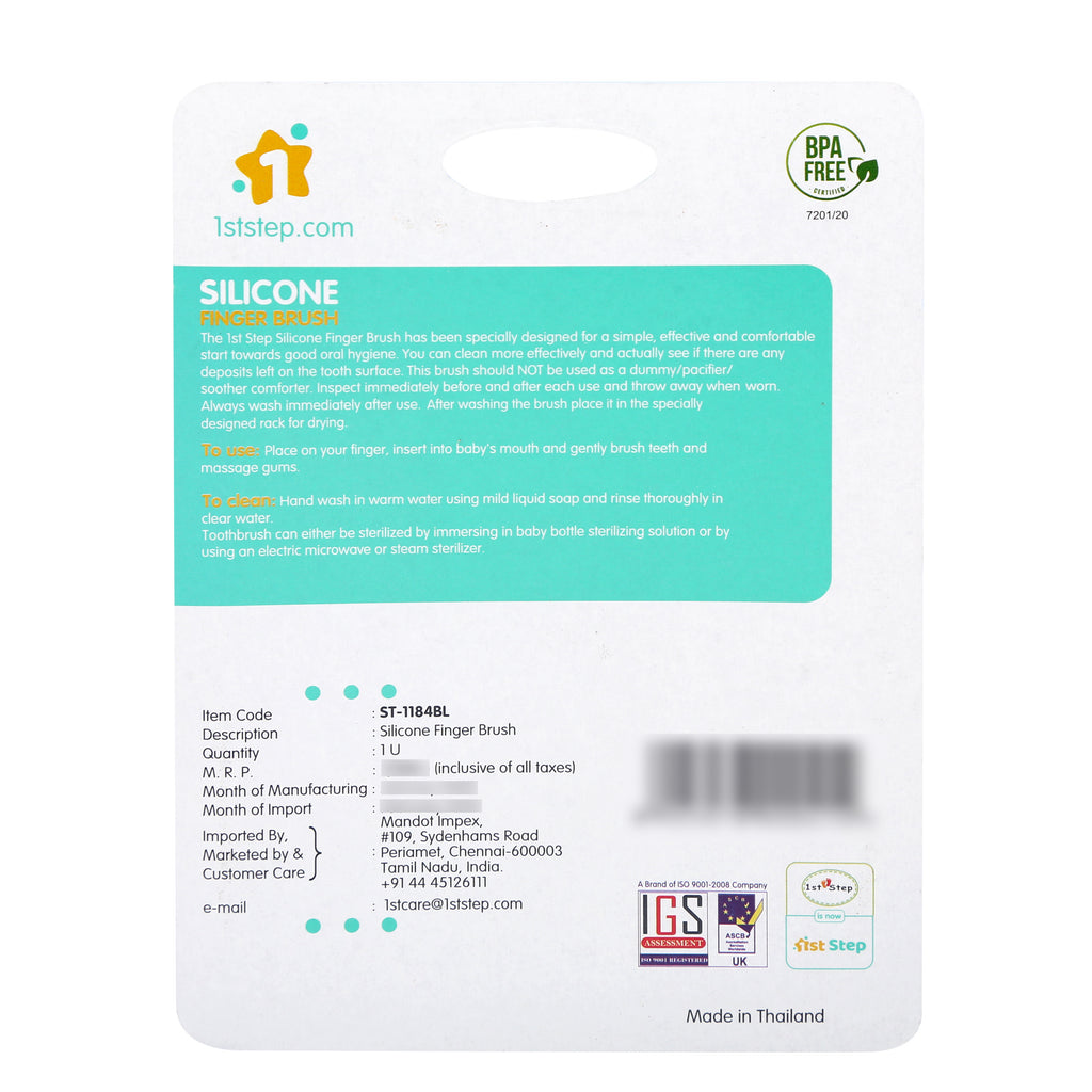 | Description | 1st Step Silicone Finger Brush Has Been Specially Designed For Effective And Comfortable Start Towards Oral Hygiene. Comes With A Drying Rack Which Helps In Drying The Finger Brush. The Finger Brush Is Made Of Silicone And Is BPA Free |