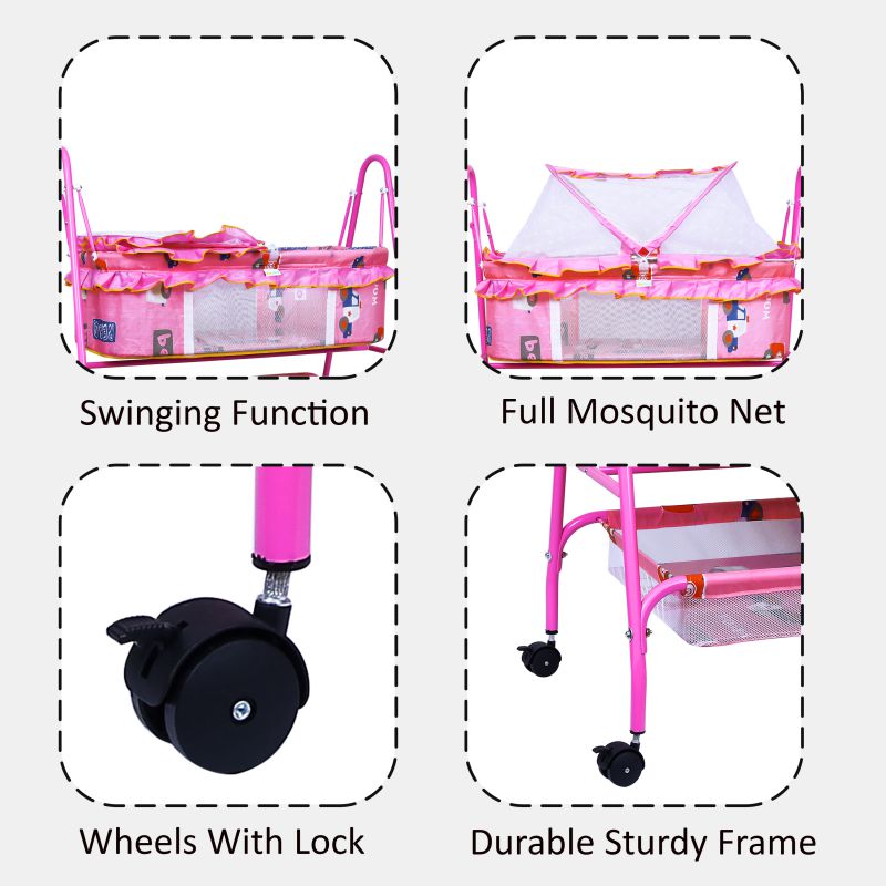 - Cradle With Swing Function:- The Swing Function Works Like A Lullaby Helping The Baby In Falling Asleep.