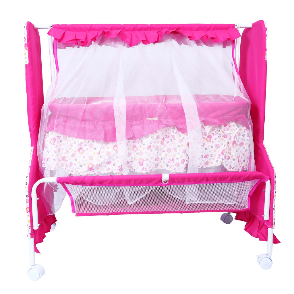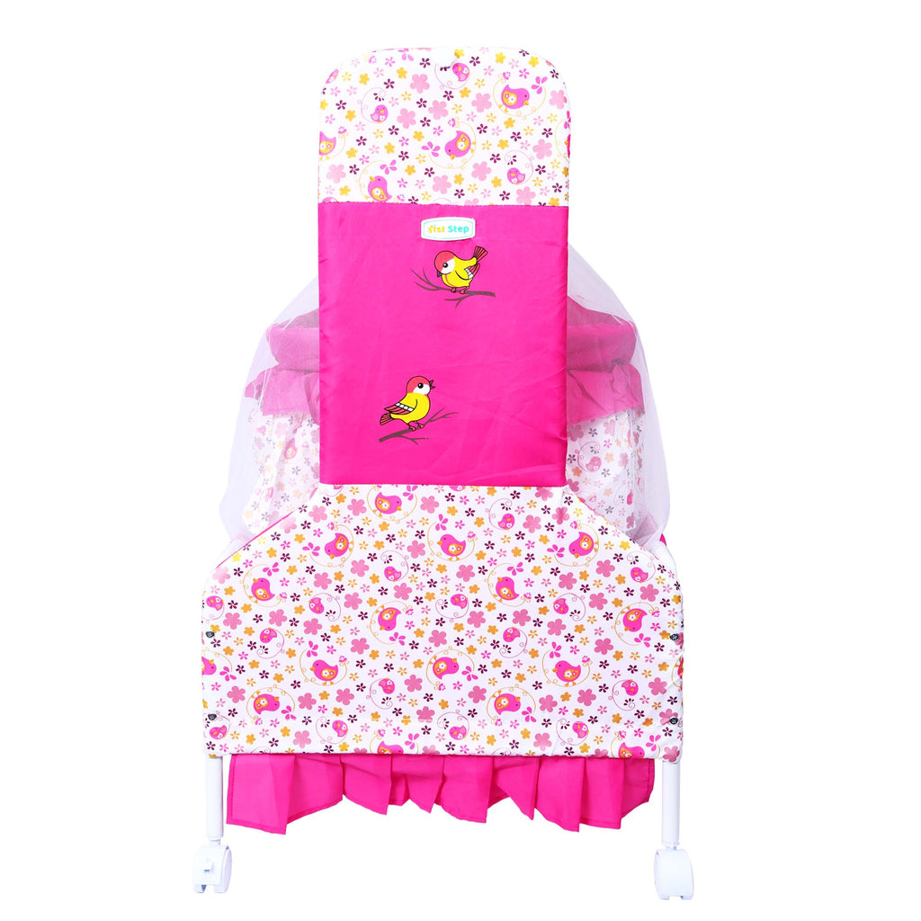 Description : 1st Step Cradle with swinging function is the perfect combination of simplicity, safety and a perfect traditional design suitable for babies. It comes with mosquito net to keep the pests away and provides a complete, comfortable and uninterrupted sleep to baby. It is designed to provide safe and good sleeping environment for your baby. Storage space at the bottom provides space to store baby's essential items. It's compact design with wheels enables you to move the Cradle from one place to another easily and the wheel brakes make sure that the Cradle stays in one place when stationery. 1st Step Cradle makes sure that both the baby and the parent get their share of good night's sleep.